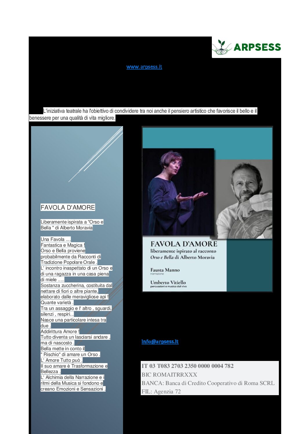 “FAVOLA D’AMORE” Liberamente ispirata a “Orso e Bella ” di Alberto Moravia con Fausta Manno e Umberto Vitiello